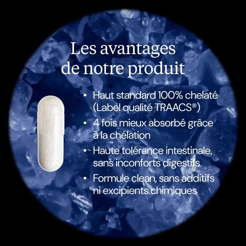 - Grade TRAACS® pur 100% chélaté, 0% tamponné oxyde